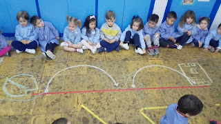 Para iniciarnos en el trazo iglú, hace tiempo que lo interiorizamos, recorriendo con nuestro cuerpo, dos caminos con forma de "iglú".